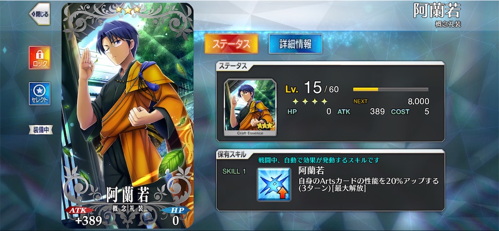 阿蘭若という礼装があります93番で3ターンの間アーツ性能を上げます 上位礼装に毒蛇一芸があります これはビリーバットの時を操る巻物に書いてあったものです 3ターンのアーツシステムに適した礼装でググると